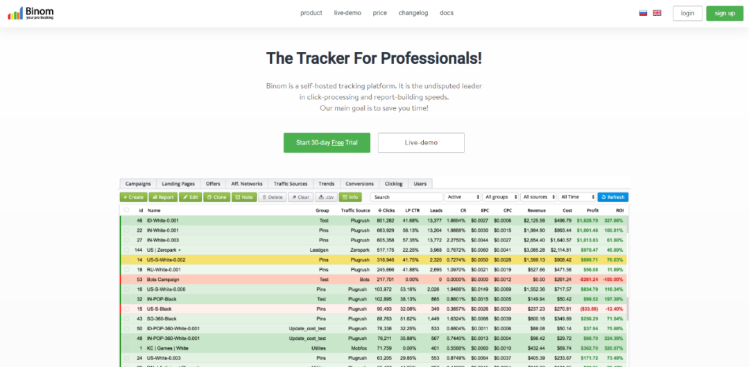 先聊聊Binom的基础性能吧,它们允许你把数据放在自己的服务器上(这确实是我考虑的因素),而且我的流量主要来源于Pop,Native,Redirect。这里它们有几个优势: