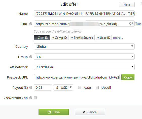 我觉得对于新手来说,它们有个功能做的很到位。在Aff.networks和Traffic sources的Load from template,它能详细介绍你要添加的流量属于什么类型,网盟评分星级参考。主要是点击后自动把offer URL后缀添加。(新手很多会忘记)