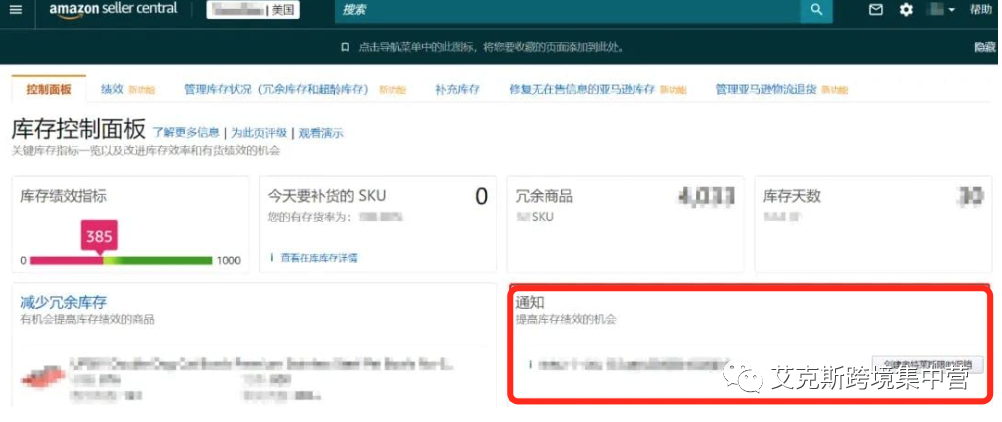 在卖家平台顶部的下拉菜单种选择【库存】-【库存规划】进入库存控制面板,在通知栏中查看是否有受邀加入奥特莱斯限时促销的商品: