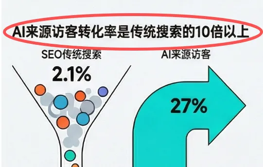 这个河北的外贸老板给我看了他们服务商给他们的宣传资料,提到了GEO的转化率是SEO的好几倍,虽然没写到合同里,但是给客户画了个大饼,客户以为询盘也会被SEO多几倍。