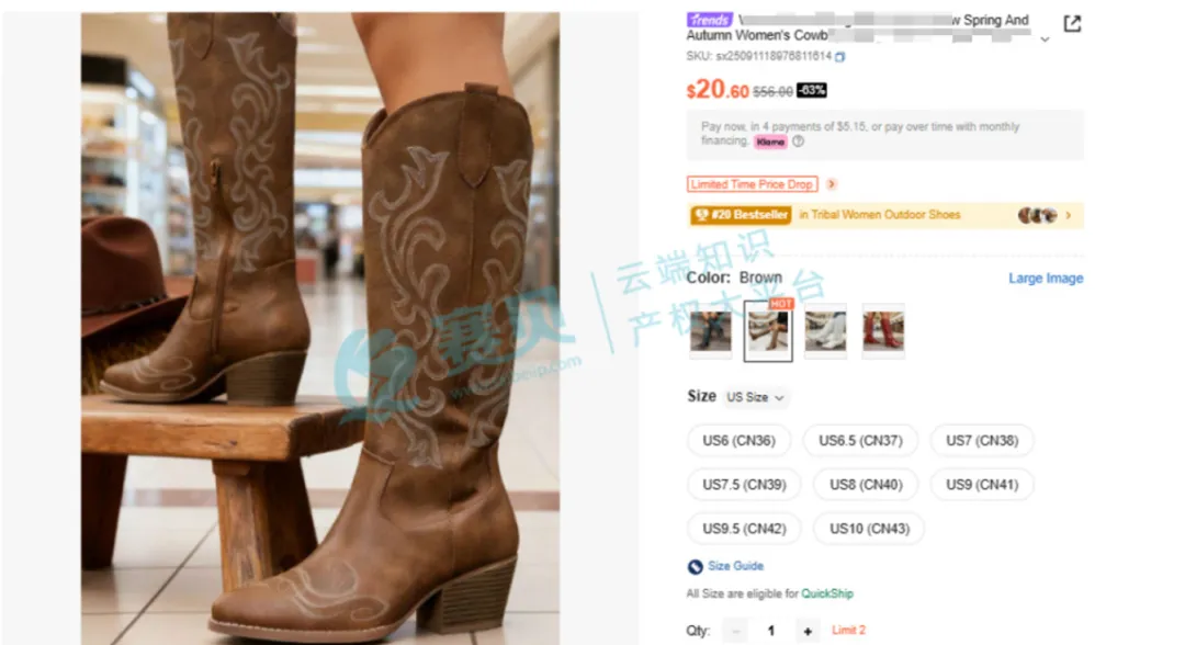 从赛贝TRO案件查询系统获悉,美国伊利诺伊州北区联邦法院于2026年3月9日受理一起版权侵权TRO案件,原告为Hangzhou Yuanzu Technology Co., Ltd.,原告就其自主设计的靴子花卉图案系列版权发起维权,指控被告通过线上店铺销售侵权产品,涉嫌故意侵犯其受美国版权法保护的作品权益。本次预警提醒相关跨境卖家,立即排查自身店铺是否涉及涉案版权图案,避免陷入侵权纠纷。
