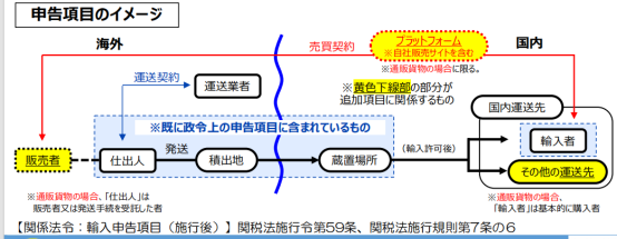 ○ 令和7年10月12日实施 货物进口许可证后,在进口报关项目中添加“目的地的地点和名称”、“进口货物是否属于邮购货物”,以及如果与邮购货物相对应,则添加“平台名称等”,这些事项也必须申报。进口报关项目的添加不仅适用于与邮购发货和使用 FS 发货相关的进口报关单(不包括“平台名称等”)。