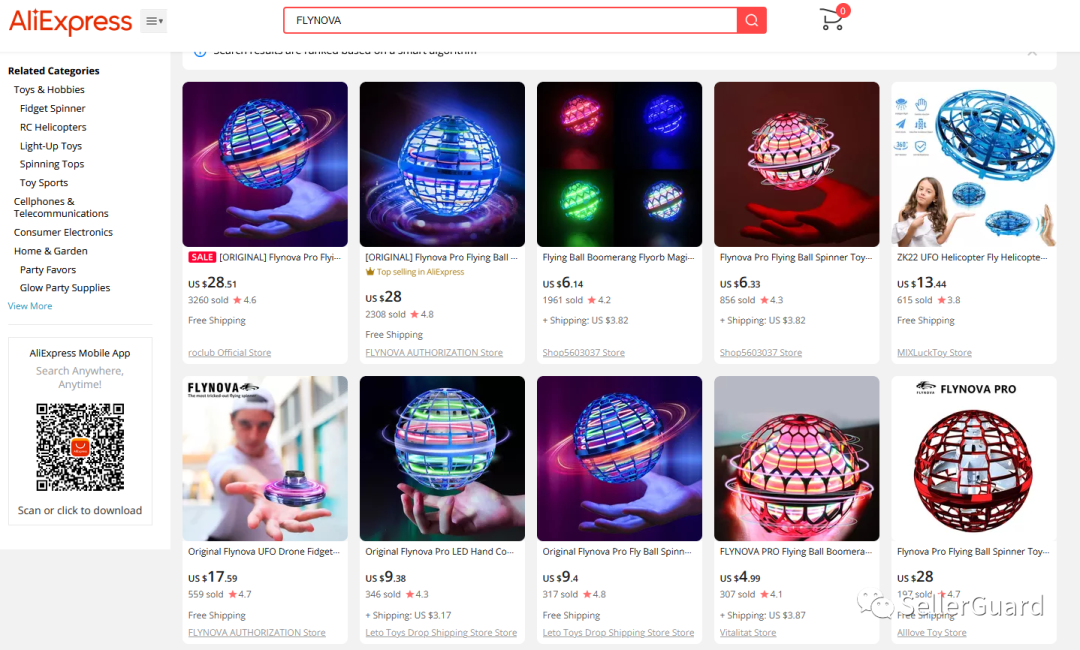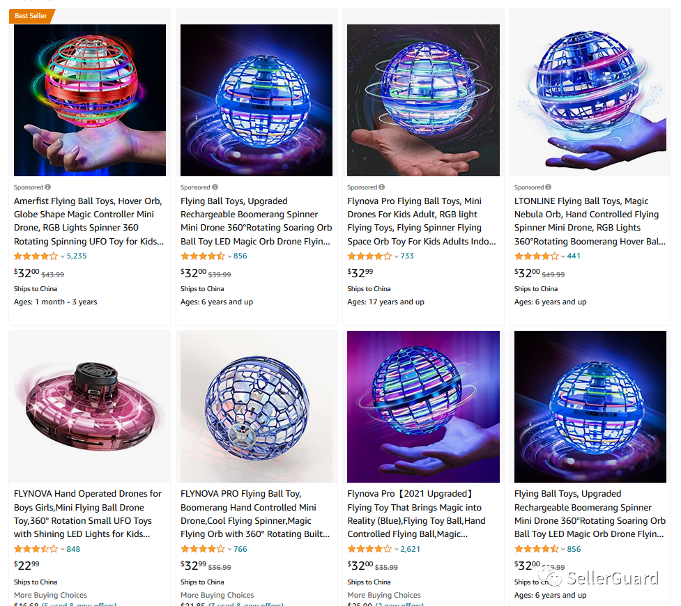 FLYNOVA相关的产品在跨境各平台的销量非常可观,属于一款爆款玩具了,售卖的卖家也不在少数: