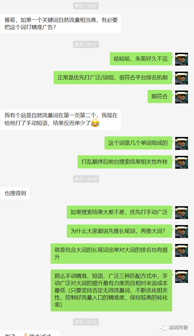 就是包含大词的长尾词出单对大词的排名也有提升。那么手动精准、短语、广泛三种匹配方式中,手动广泛对大词的提升最有力度而且相对来说成本最低(只要坚持否定无效流量词,不断优化相关性,控制好流量入口的精准度,保持较高的转化率)