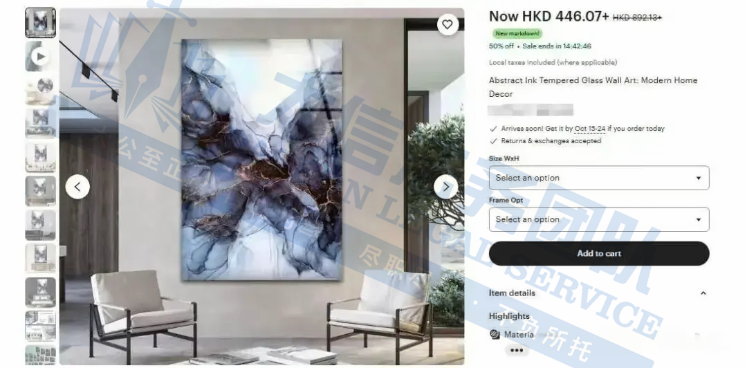 原告主要以自然、情绪与流动的色彩为灵感,强调色彩与纹理的自由交织,营造宁静与沉浸的氛围,带给观者心灵的安抚与片刻的逃离。创作媒介是“酒精墨水”——这种材料画出来的画,色彩晕染特别自然,质感细腻又有层次,整体风格特别舒缓,能让人感受到 “平和与快乐”,特别受高端家居装饰、软装类目买家的青睐。