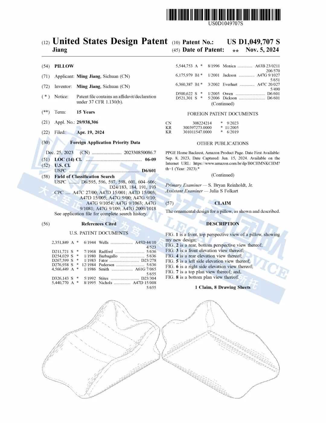 此案为专利维权,涉及一项外观专利,专利号:US D1,049,707 S,注意,该专利为外观专利,只要外观相似就有侵权的危险,以下是涉及专利的具体信息,未经授权不得擅自使用,侵权风险极高,跨境卖家尽快检索下架,避免TRO侵权风险!