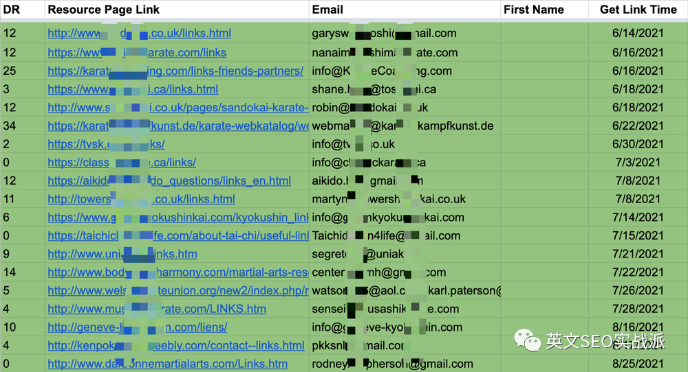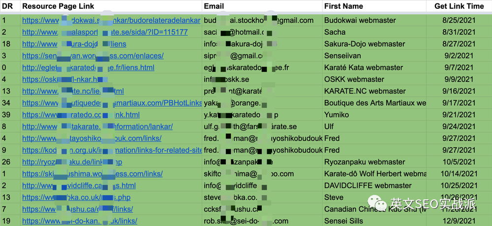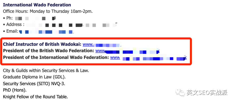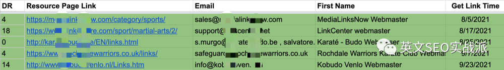 可以看到,这些网站的DR都不高。这是因为在空手道领域,有资源页的网站,大部分都是社团、道场、武术学校、个人爱好者、协会组织,这些网站普遍就是小站。
