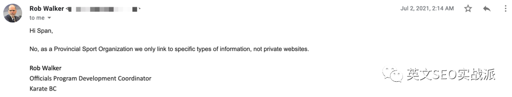 而快速了解一个网站的方法就是直接看About Page,所以尽可能的在这里展示你的EAT来获得认可。我感觉很明显的是,当我的About Page只有简单的自我介绍的时候,我的Outreach就时常收到类似这样的回复: