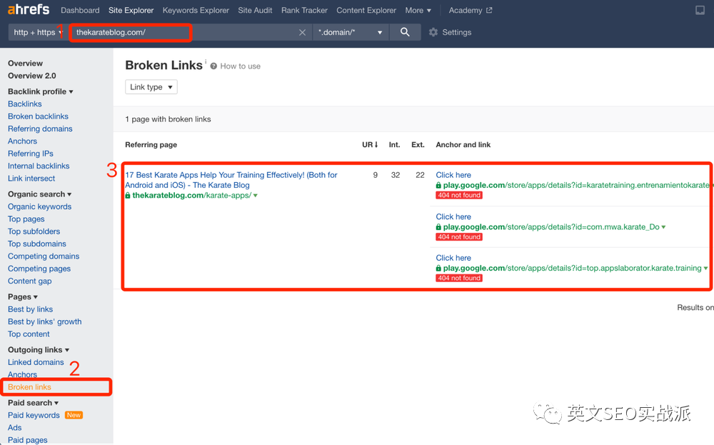 那么,怎样发现Broken Link呢,我们使用工具,以Ahrefs为例: