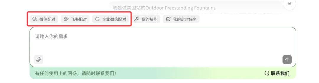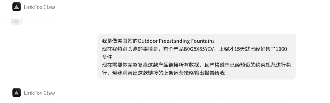 在Linkfox Claw中输入:我是做美国站的Outdoor Freestanding Fountains