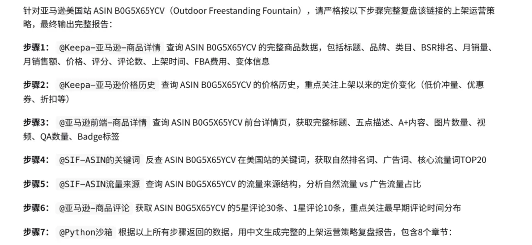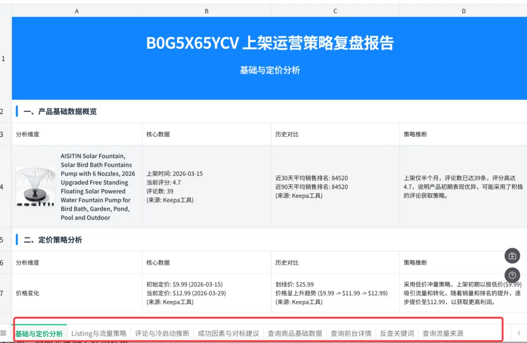 步骤7: @Python沙箱 根据以上所有步骤返回的数据,用中文生成完整的上架运营策略复盘报告