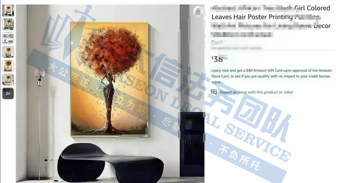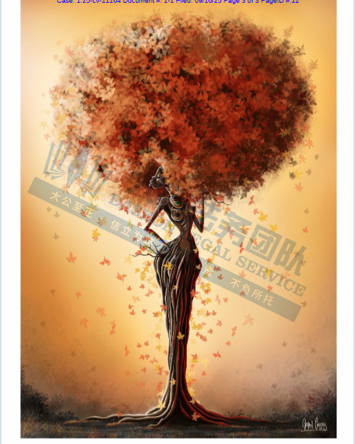 此案为版权维权,涉及1幅非洲树黑人女孩版权,涉案版权号为:VA 2-404-048,于2024年4月26日下证,以下是涉及版权具体信息,未经授权不得擅自使用,侵权风险极高,跨境卖家尤其是服装卖家尽快检索下架,避免TRO侵权风险!