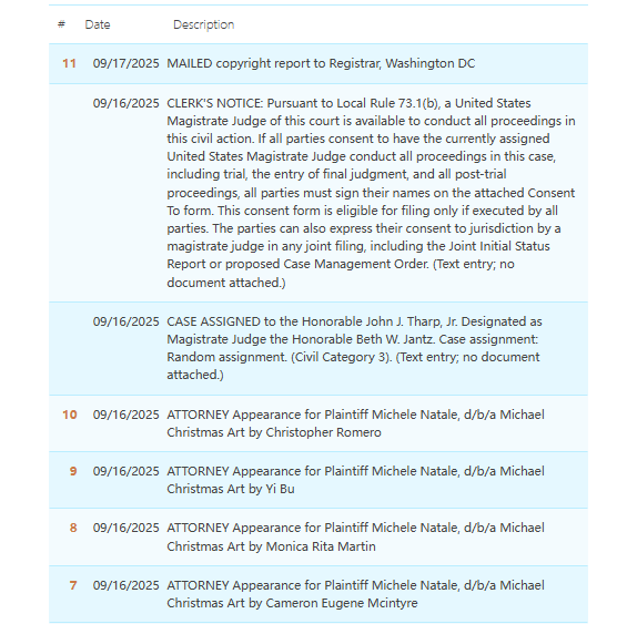 此案为版权维权,涉及6张猫咪版权图,以下是涉及版权具体信息,未经授权不得擅自使用,侵权风险极高,跨境卖家尤其是服装卖家尽快检索下架,避免TRO侵权风险!