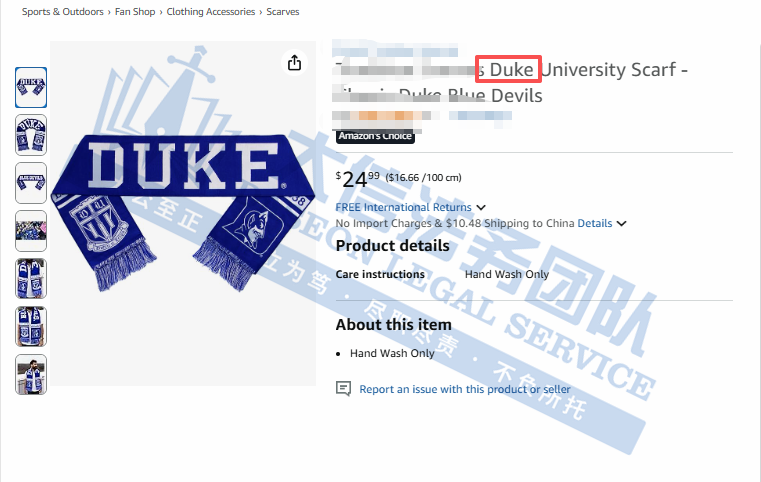 此案为商标维权,涉及原告注册的多个文字商标以及图形商标展开的维权,“BLUE DEVILS”系列、“DUKE”系列,还有像“三叉戟 +字母 D”这种特色设计商标,涵盖T恤、服装、装饰品、玩具、文具、珠宝及配饰等多个领域,以下是涉及商标具体信息,未经授权不得擅自使用,侵权风险极高,跨境卖家尤其是服装卖家尽快检索下架,避免TRO侵权风险!