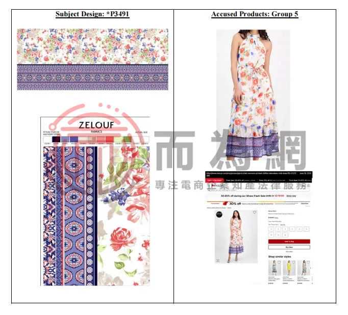 本案涉及多款Zelouf原创设计印花图案,具体如下,左边为原告版权图案,右边是原告列举的被告侵权实例。未经授权以下印花图案版权及原告的其他设计都不能使用,否则会有侵权风险!