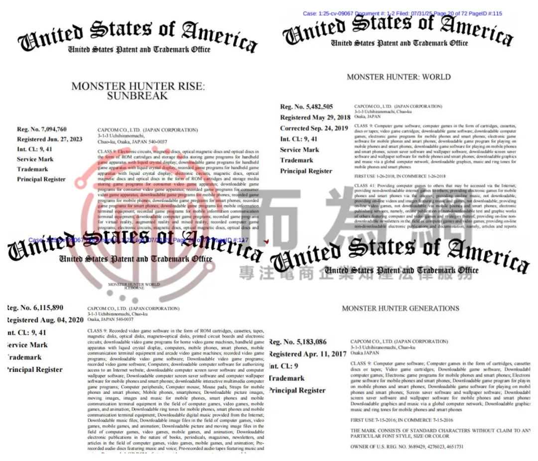 【侵权快讯】25-cv-9067 又一热门游戏被TME律所代理!Monster Hunter 怪物猎人商标版权都不能卖!