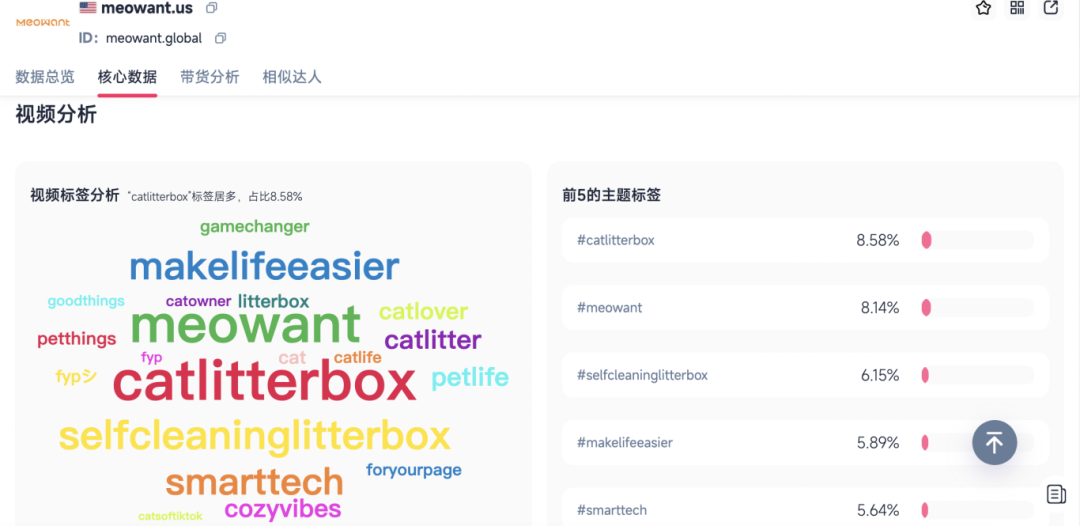 Meowant在达人营销方面的核心策略,在于规模化撬动宠物护理与智能家居领域的尾部创作者。