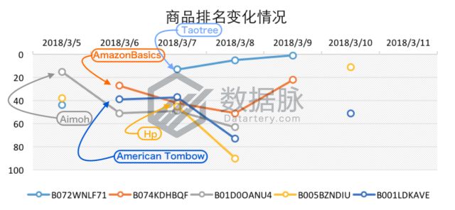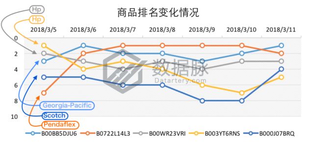 与此同时,品牌Pendaflex也于3月5日至3月7日一路攀升到榜单首位,并在3月7日之后连续4天蝉联首位,取得了平均排名2.14的成绩,位列商品综合第二。