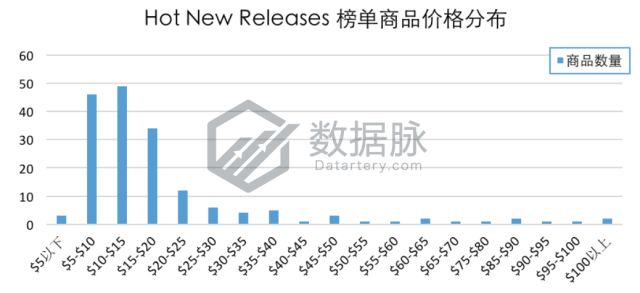 上周Office Products品类Hot New Releases榜单商品最高价$119.99,最低价$4.61,平均价格$20.39。在上周,价格段$5.00-$15.00依旧是Hot New Releases榜单上榜商品的最热定价区间,其中有25.52%的商品定价于$10.00-$15.00区间,同时有23.96%的上榜商品定价 在$5.00-$10.00区间。此外,在上周进入Office Products品类Hot New Releases榜单的商品中,有2款商品的定价超过了$100.00,骆探长(shujumai.com)发现,相比于前几期分析,该周Hot New Releases榜单登榜商品价格变化情况与Best Sellers榜单相反,商品平均价格相较于上期分析回落明显,低价新品更受榜单重视。