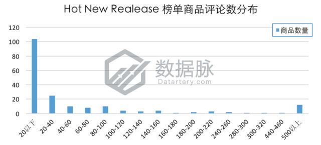 在上周登榜Office Products品类Hot New Releases榜单的商品中,单个商品拥有的最大评论数为4500.0,最小评论数为0.0条,平均评论数91.64条,评论平均星级4.53星。在上榜的商品中,有超过半数的商品评论数在20条以下,占比达到了54.17%;此外骆探长(shujumai.com)发现,上周有12款上榜商品的评论数超过500条,占上榜 商品总数的6.25%。相较于前几期分析,该周登榜的低评论新品数量出现了明显的上升,0评论全新商品对Hot New Releases对榜单冲击力在上周略有增强。