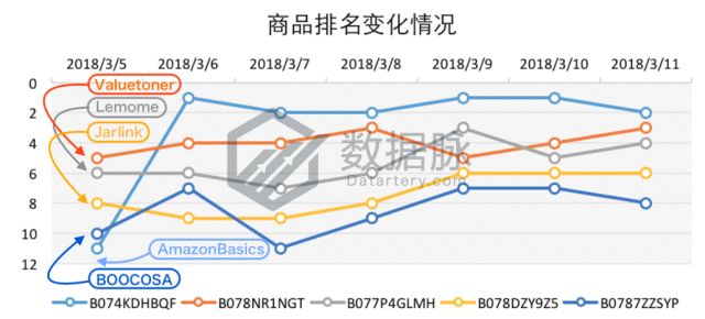 而我们曾经在上文Hot New Releases榜单分析中提及的AmazonBasics回形针产品也在Movers & Shakers榜单中不甘落后,于2018年3月6日起连续四天进入榜单,以35.5的平均排名位列综合排名第二。