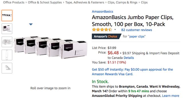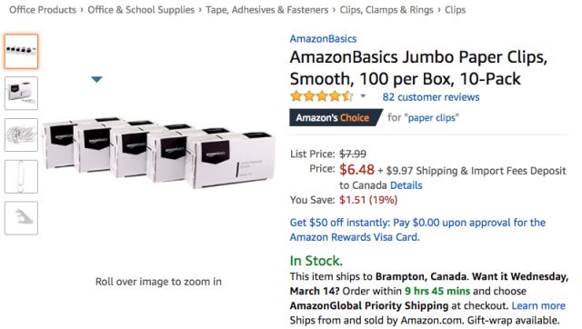 可以看到,在上周Office Products品类的Hot New Releases榜单中,来自亚马逊自营品牌AmazonBasics的回形针产品在3月6日由榜单第11位一举跃升至榜首,并在随后的五天中保持着榜单前二的优秀战绩, 位列综合排名第一。