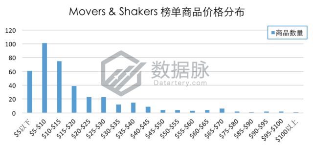 上周Office Products品类Movers & Shakers榜单商品最高价$390.0,最低价$0.01,平均价格$18.54。其中,价格在$5.00-$10.00之间的商品数量较多,占上榜商品总数的23.82%,另有17.69%的上榜商品定价于$10.00-$15.00价格段。此外骆探长(shujumai.com)发现,仅有1款商品的价格超 过$100.00,为定价$390.00的VARIDESK可调节电脑桌。
