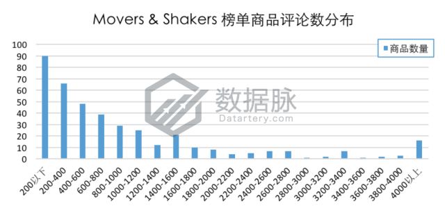 在上周登榜Office Products品类Movers & Shakers榜单的商品中,单个商品拥有的最大评论数为13945.0,最小评论数为0.0条,平均评论数1056.32条,评论平均星级4.36星。其中,评论数不超过200条的商品相对较多,占上榜商品总数的21.23%;另有15.57%的商品评论数在200条至400条之间,11.32%的商品评论数在400条至600条之间。此外骆探长(shujumai.com)发现,上周共有16款登榜商品的评论数超过了4000条,占上榜商品总数的3.77%。