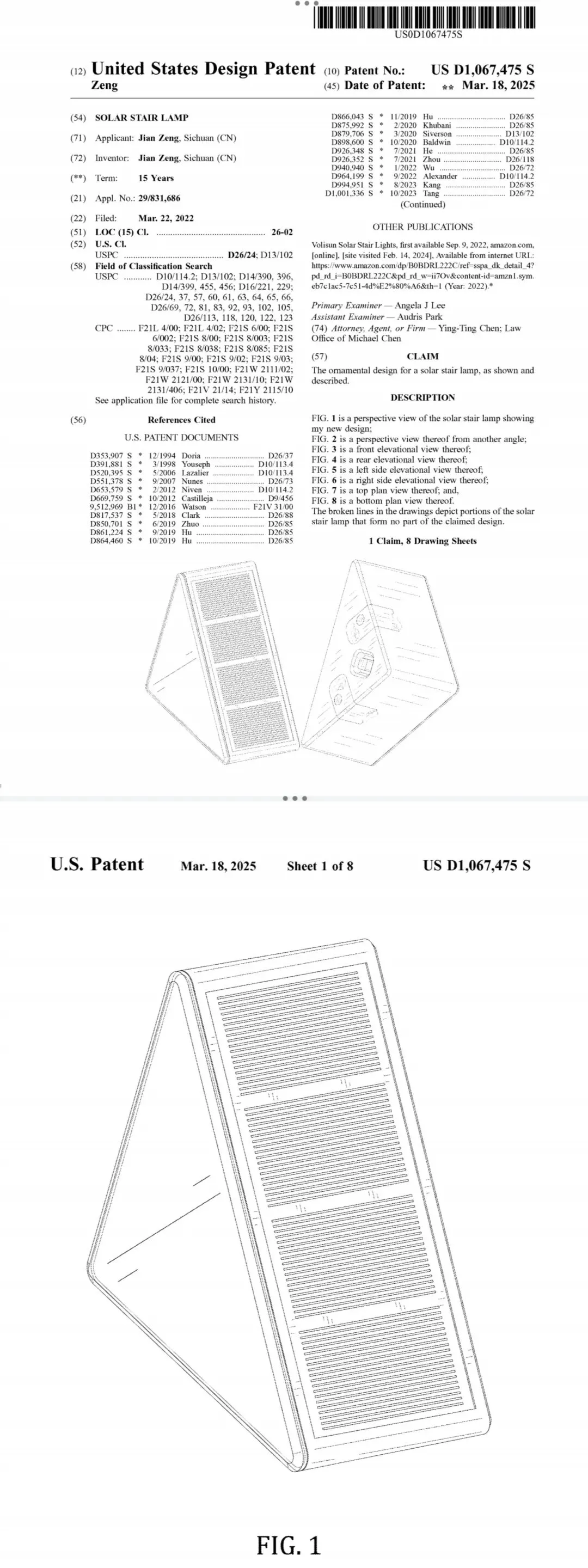 原告JIAN ZENG是中国跨境照明领域卖家,专注户外太阳能灯具研发与销售,其产品主打免布线、节能防水特性,适配庭院台阶场景,在海外电商平台热销。