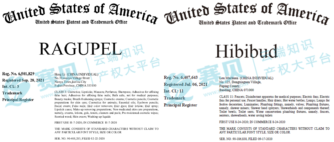 这次维权的核心是两个美国注册商标,AGUPEL:属于第 3 类美妆个护品类,像口红、面膜这些全品类的化妆品,还有个护清洁品;HIBIBUD:属于第 11 类灯具卫浴品类,节日灯、水龙头这些照明产品、卫浴产品。