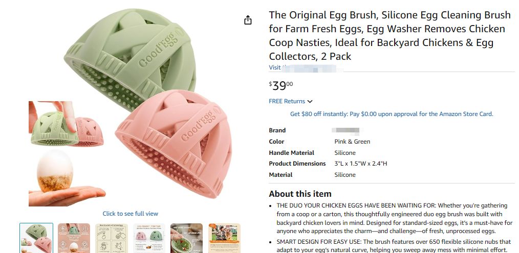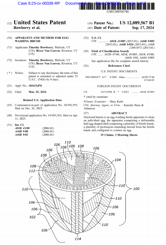 原告GoodEgg Stuff LLC是一家在特拉华州的有限责任公司,公司长期从事家居用品的设计、采购及营销业务。此次维权的产品是一款鸡蛋刷。这款产品具有多个灵活的硅胶小块,可适应鸡蛋的自然曲线,帮助您轻松清除脏乱。只需握住鸡蛋,在冷水下轻轻地将其靠在刷子上旋转,就可以开始了。将刷子翻过来冲洗干净——简单而令人满意。