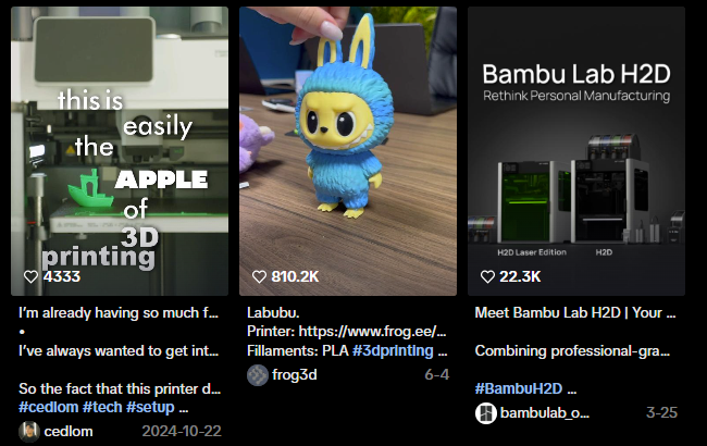 另外,拓竹科技发布佣金分销策略,与3D打印类、科技类、DIY爱好者等垂直博主合作,通过高质量的测评3D打印产品,创新打印模型,展示多彩打印场景等内容,以视觉冲击,提高用户感兴趣程度,在TikTok上形成病毒式裂变,为独立站带来大量获客。