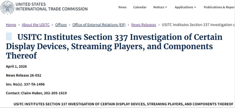 结果还没缓过神,4月1日,ITC又丢下一颗更大的炸弹——连美国本土的流媒体巨头Roku都被查了,还有Purple Tag等上下游企业也进了被告名单。