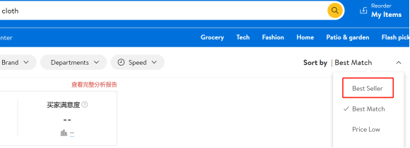 Q:沃尔玛前台关键词搜索,产品的Best seller标是按照什么来决定的?