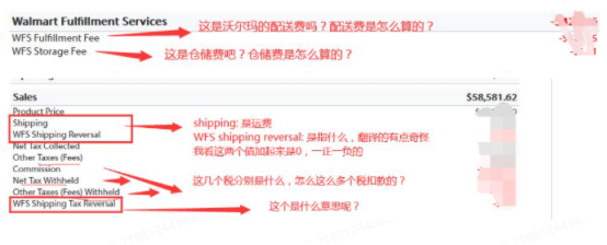 Walmart Return Shipping Service Charge/沃尔玛退货运输服务费。这个费用是你付给沃尔玛的并不是沃尔玛付给你的。当月产生的退货运费有可能并不在这个回款单里可能在下个回款单里。
