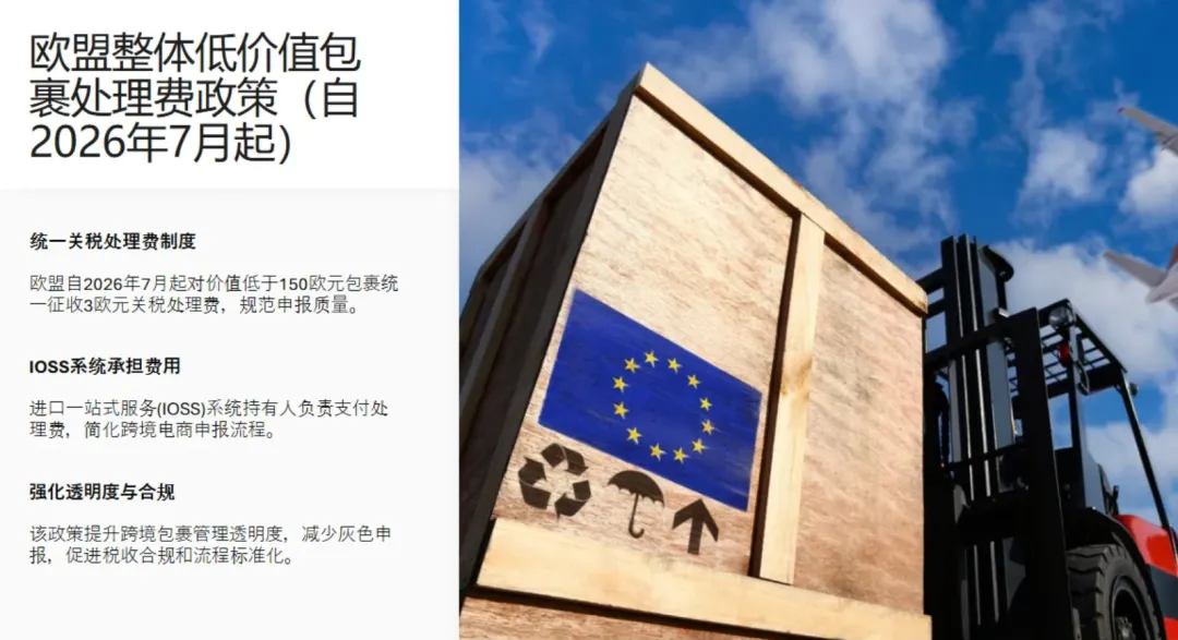 1️⃣ 2026年7月1日起,欧盟对≤150欧中国跨境小包征收3欧元固定关税 。