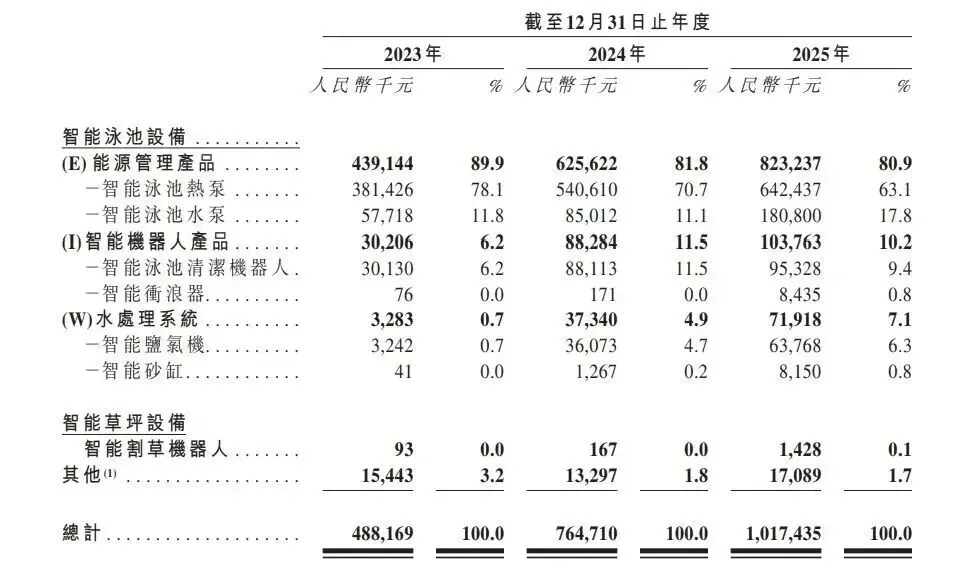 它确实已经切入泳池机器人赛道,也确实有泳池设备基本盘,但从财务报表来看,它目前更像一家以泳池热泵、水泵为核心的泳池暖通设备公司。