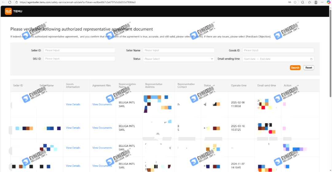 平台会对授权代表资质进行审核。例如,Temu平台不仅要求卖家提供欧代协议,还会发送邮件至欧代方,确认卖家是否委托其代理。如果代理商超时未回复或告知协议无效,审核会被驳回。