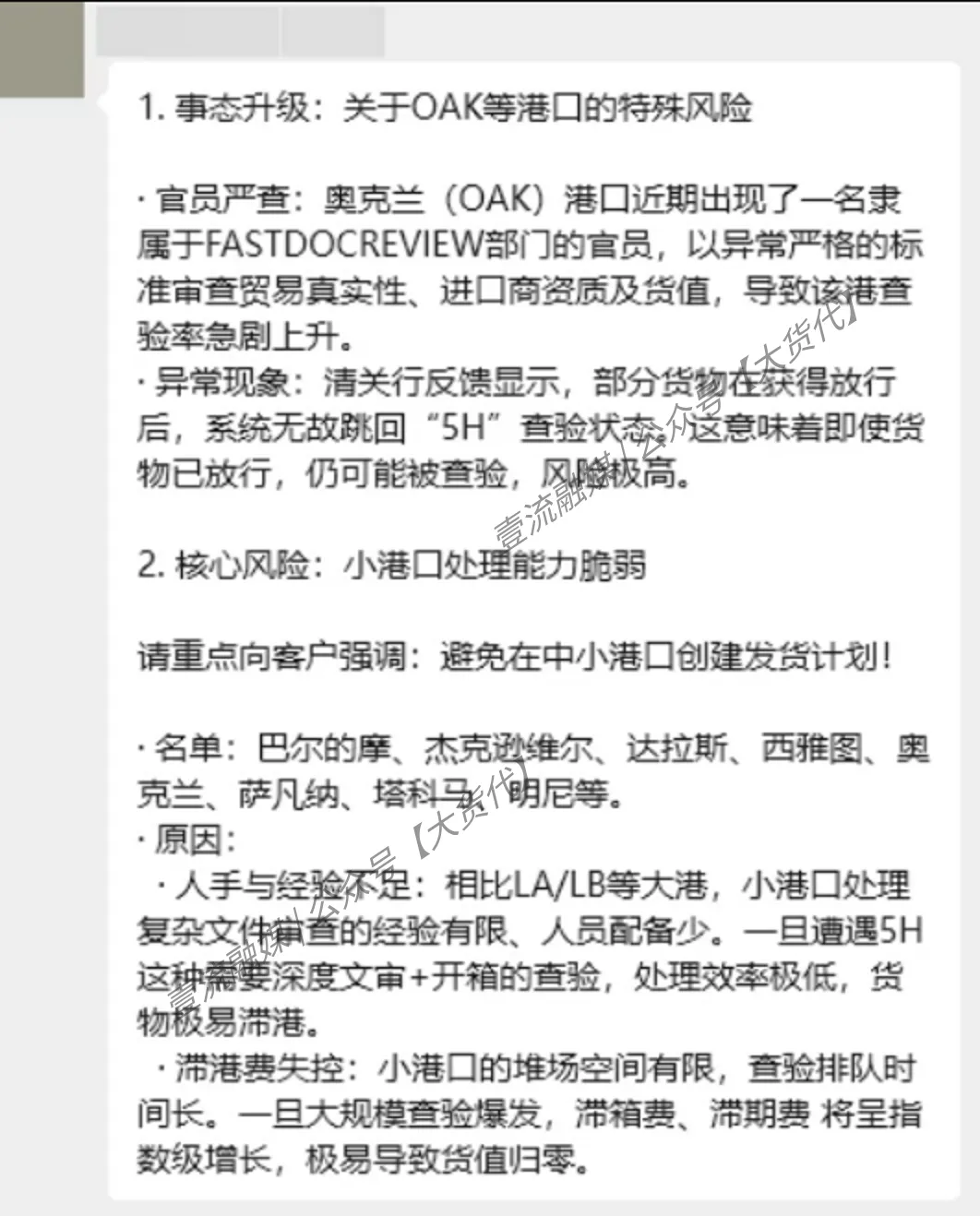 而目前呢,据多家货代同行发布及分享的消息显示,5H查验是已迅速蔓延至奥克兰、萨凡纳、西雅图等多个港口的。