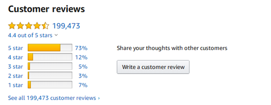 研究表示口碑在行销工具中还是有一定影响力效果,譬如在亚马逊平台上被10个人评比4.5颗星的商品绝不会比被300个人评比4颗星的商品来得有信服力。拥有越多的评比越有说服力,同时也能让你的商品在Amazon上被更多的人看见。