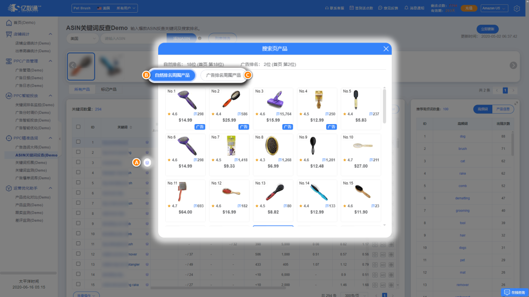 ★ 新增查看周围竞品功能:掌握反查ASIN的亚马逊收录关键词在自然搜索页面与广告排名页面的产品