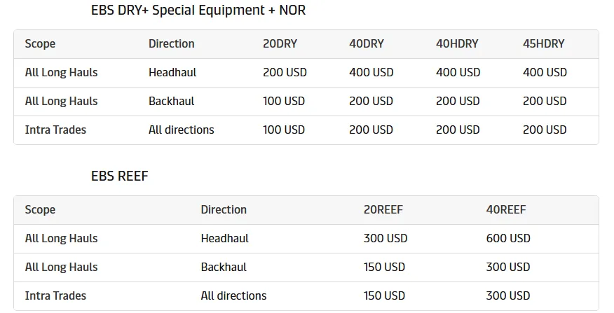 赫伯罗特 (Hapag-Lloyd)对全球所有贸易航线的费用调整将于3月23日起生效(受美国FMC监管航线为4月8日)。其长航线主航向加收标准为干箱160美元/TEU,冷藏箱225美元/TEU。