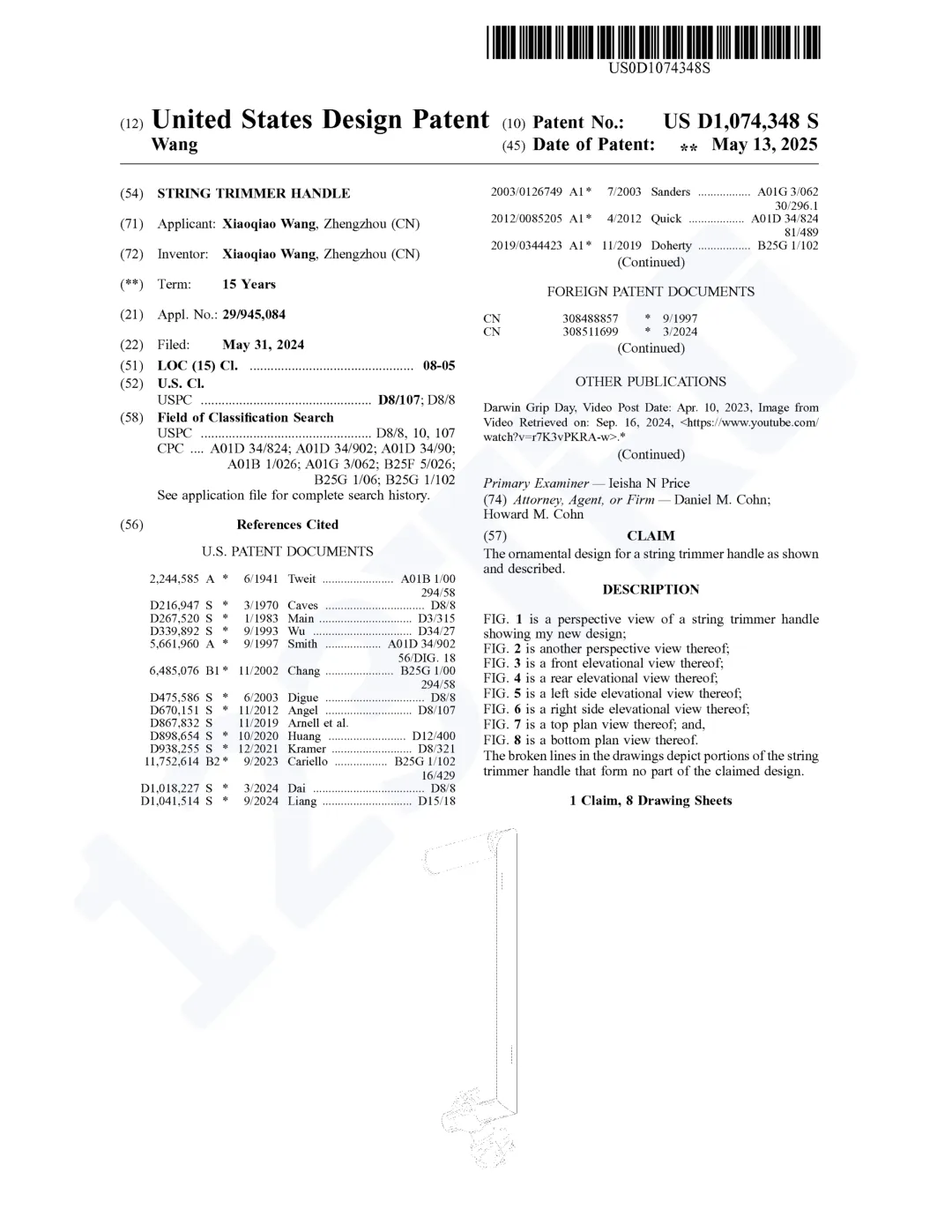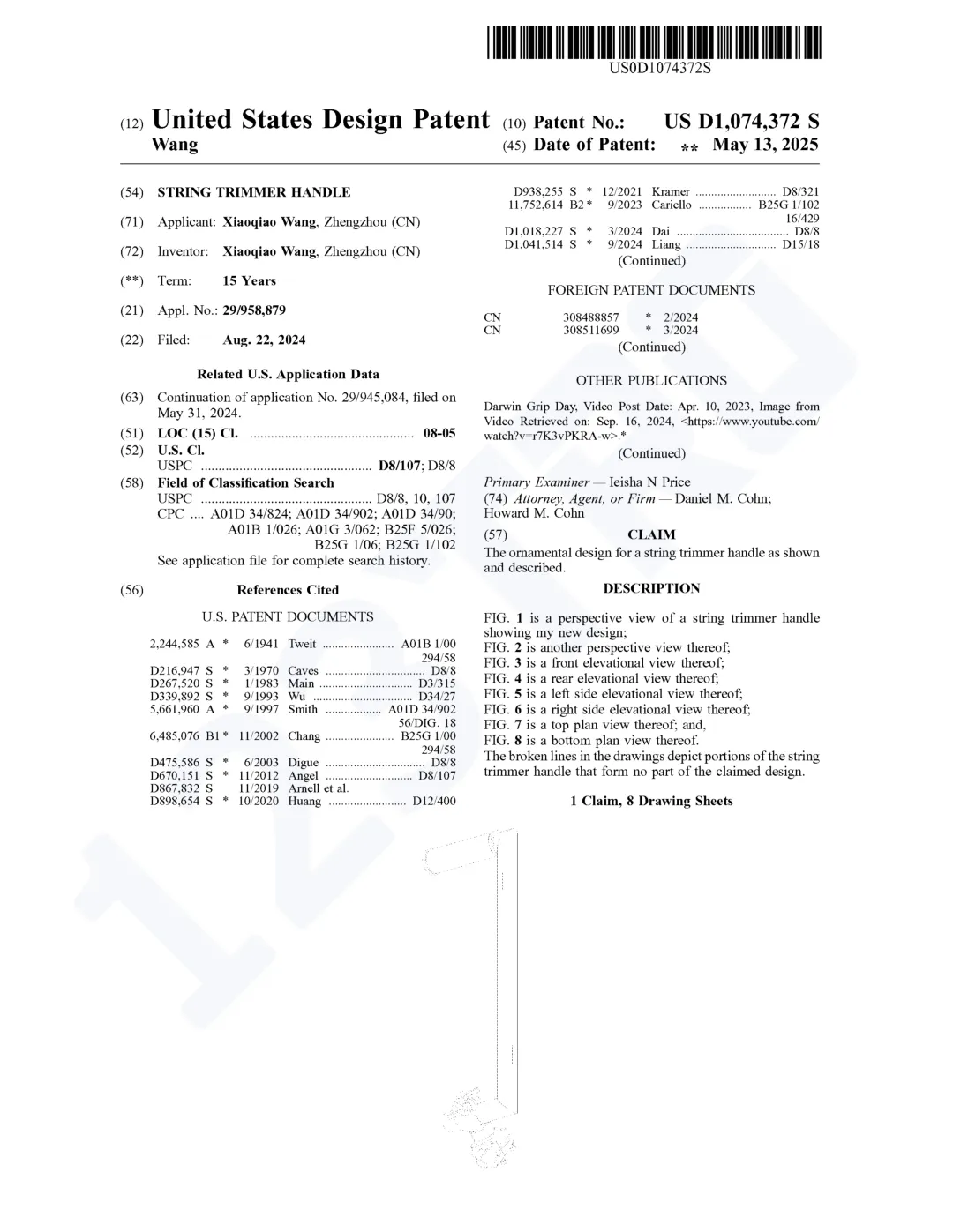 原告尚未公开具体的维权专利,但其名下仅有两条外观专利,都是和割草机手柄有关