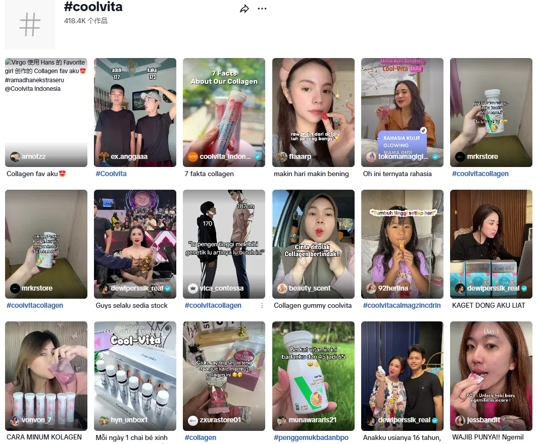 线上,Cool-Vita在TikTok上建立了强大的账号矩阵,累计粉丝超过170万。品牌主话题 #coolvita 下的UGC视频已突破 40万条,形成了自主传播的品牌声量场。