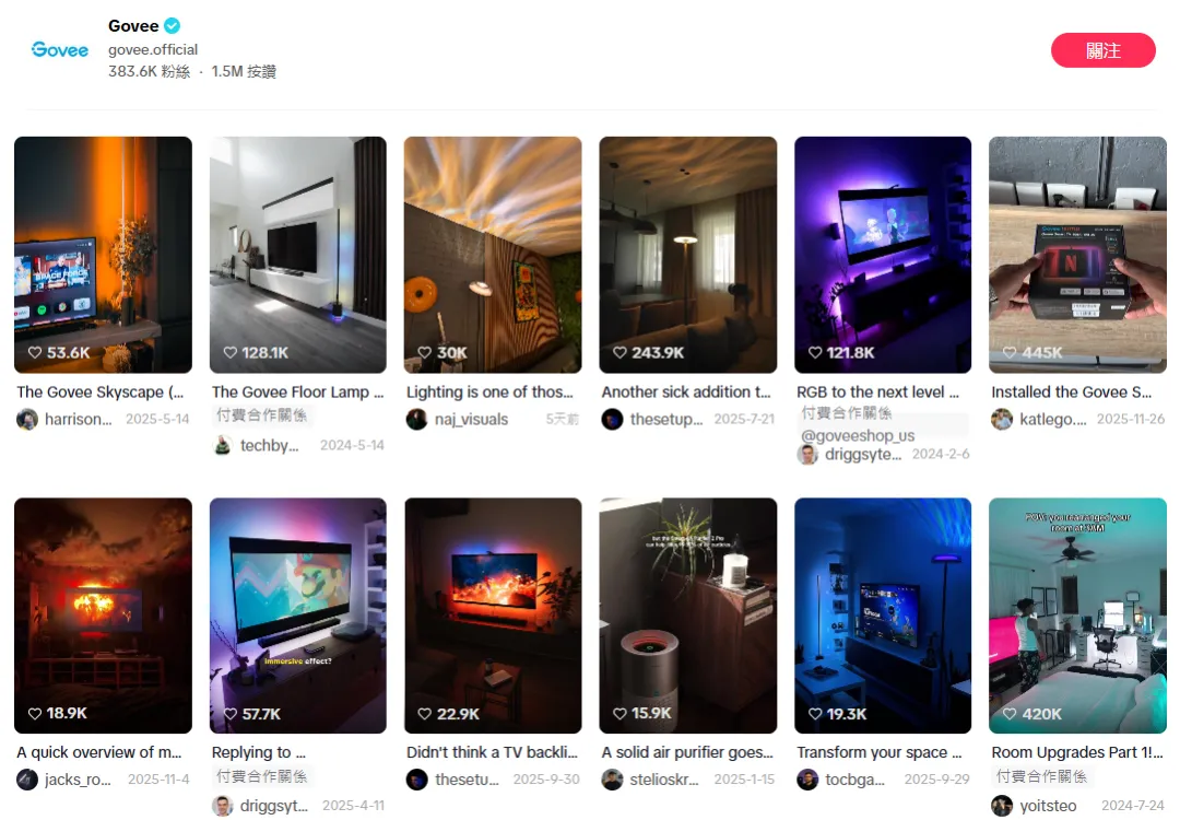 出海品牌想打开欧美市场,社媒营销是必经之路。Govee的聪明之处在于:不追顶流,只聚焦“百万级垂类红人”,用“原生内容”种草,每一笔预算都花在“精准受众”身上。