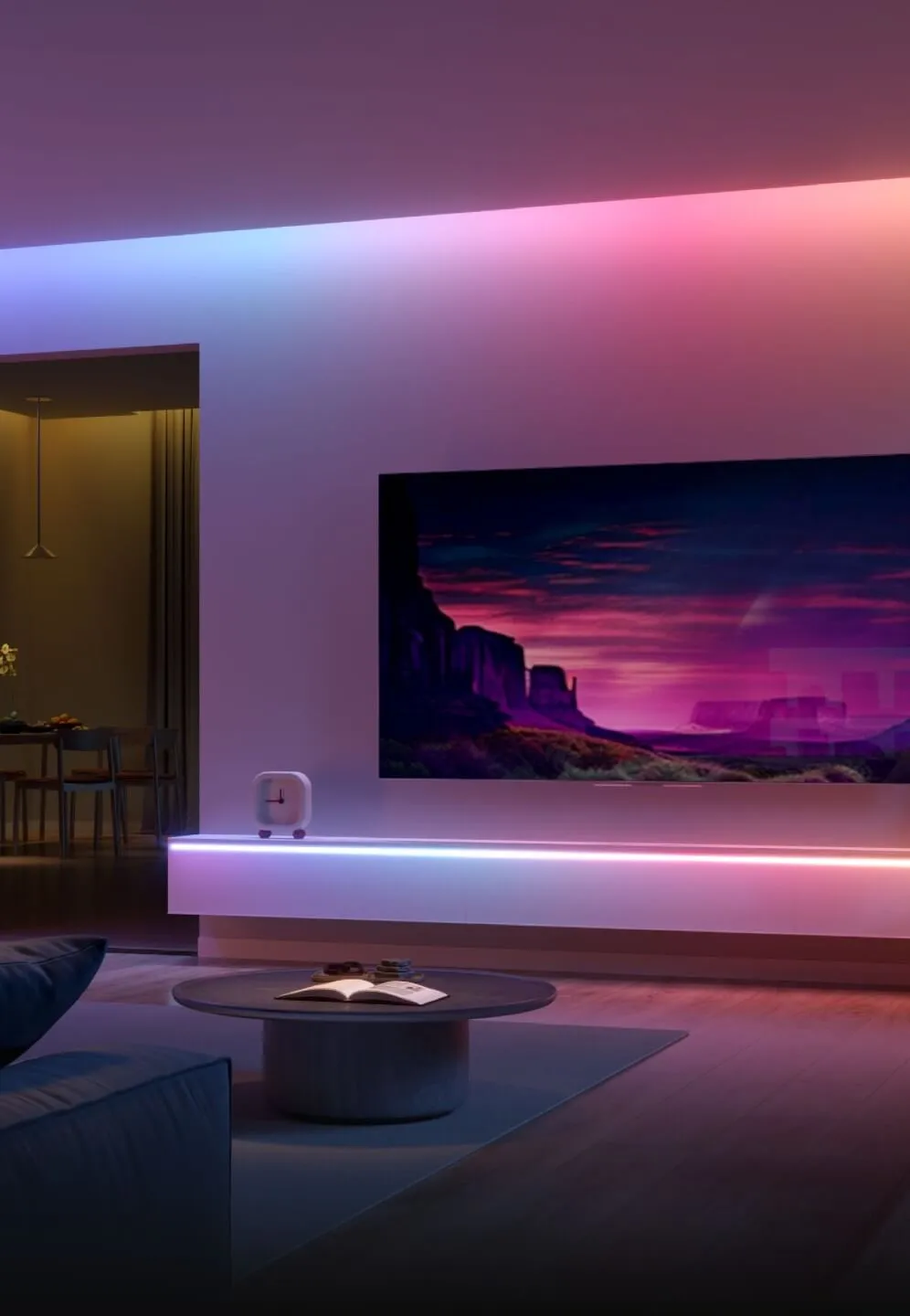 研发RGBIC分段式流光幻彩技术,让单条灯带能实现多色同显、流体渐变,告别传统RGB的单色跳跃感;