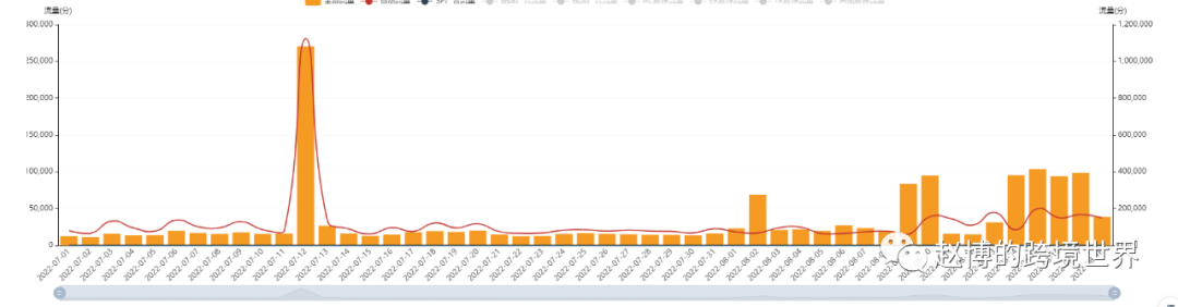 它的使用非常简单,你只需在输入框里输入你想了解流量变化的ASIN,就能看到该产品按天、按周和按月的流量趋势。