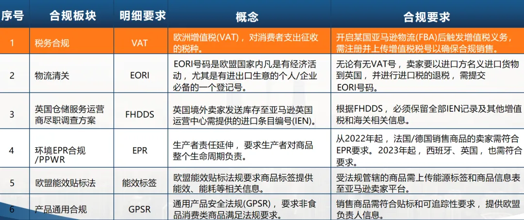 VAT(增值税):针对主体注册。欧洲27国虽有统一框架,但仍需在有库存的国家逐一注册。
