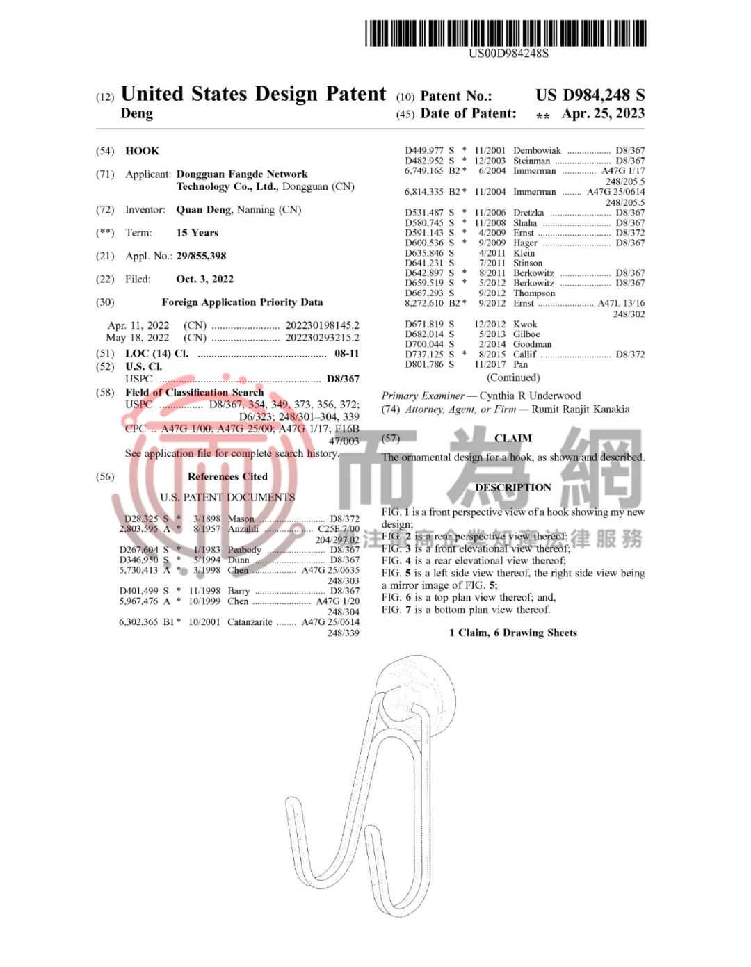 由于本案涉及的专利信息暂未公开,以下是小为查到的原告旗下拥有的金属挂钩专利,以供卖家们排查和参考,未经授权下列专利相关产品谨慎上架,避免侵权!