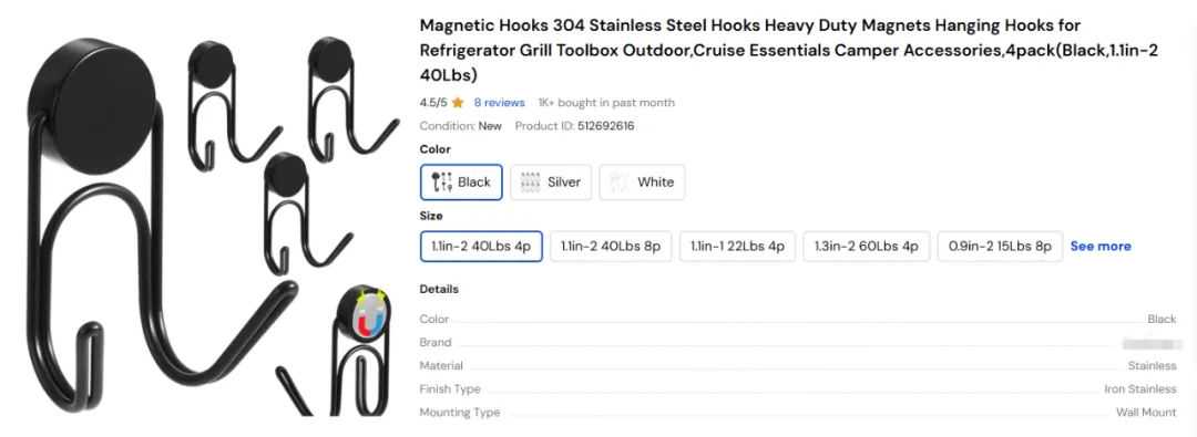 原告DONGGUAN FANGDE NETWORK TECHOLOGY CO., LTD.是一家国人企业,主要负责生产和销售各种金属钩子,旗下拥有多项金属挂钩专利。本案涉及的磁吸挂钩采用高强度不锈钢材质,搭配三层防锈涂层,防水耐腐蚀,长期使用不生锈。背面内置强磁铁,吸附力强,可牢固贴合金属表面,如冰箱、铁门、工具架等。